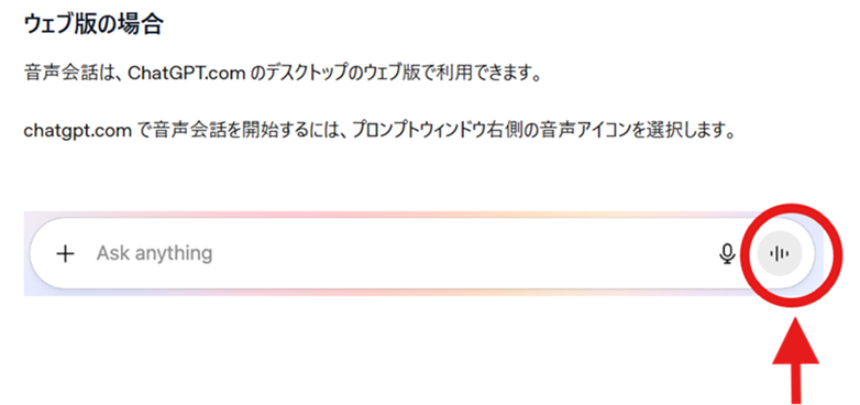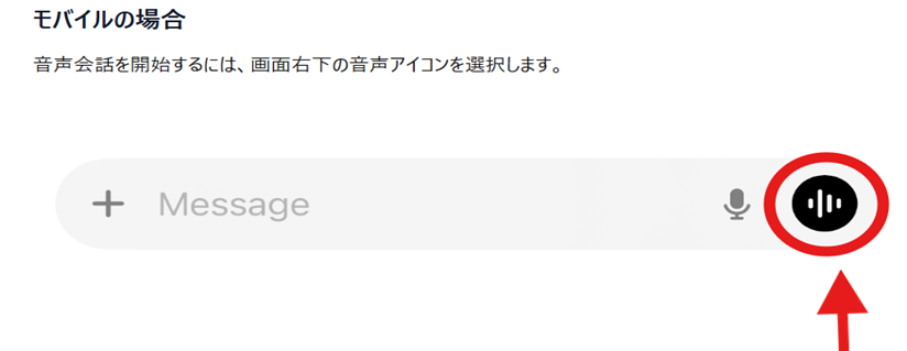 入力画面のマイクボタンの右隣にある「音声モード」ボタンを押し、話しかけると会話が始まります。
